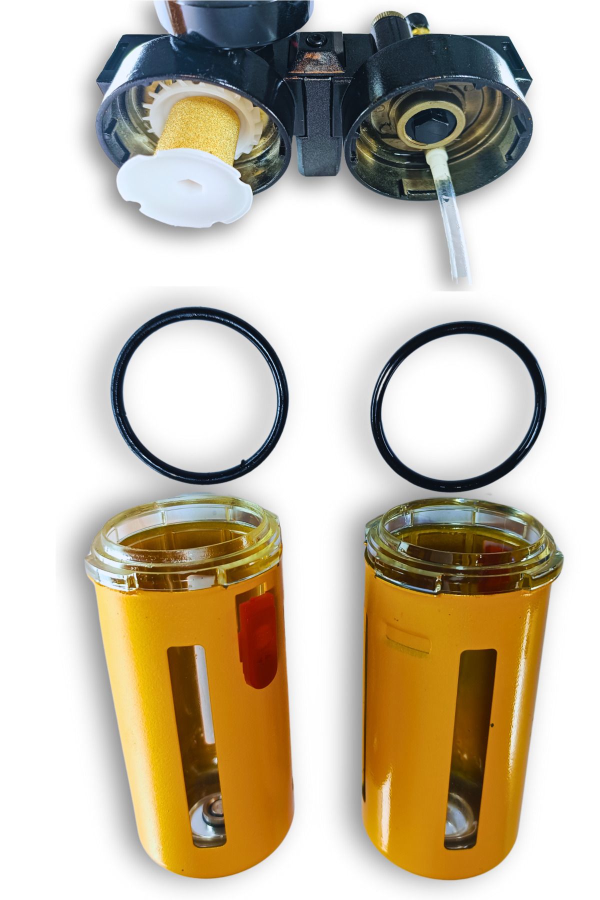 BFC4000 Redüktörlü ve Yağ Depolu Kompresör Yağ Filtresi, kompresör sistemleri için özel olarak tasarlanmış, yüksek performanslı bir yağ filtrasyon çözümüdür.; Redüktörlü yapısı, yağ basıncını optimize ederek akışın verimliliğini artırır ve sistemin daha stabil çalışmasını sağlar.; Yağ deposu ile entegre tasarımı, filtreleme sürecinde yağın sürekli olarak temizlenmesine yardımcı olur ve yağ kalitesini korur.; Dayanıklı ve uzun ömürlü malzemelerden üretilen BFC4000, zorlu çalışma koşullarında bile güvenilir bir performans sunar.; Kolay kurulum ve bakım imkânı ile kullanıcı dostu olan bu filtre, çeşitli kompresör sistemleri ile uyumlu bir şekilde çalışır.; Düzenli olarak değiştirilen filtreler, yağ sisteminizin optimum performansını sürdürmenize yardımcı olur ve enerji verimliliğini artırır.; BFC4000, hem endüstriyel hem de amatör kullanıcılar için ideal bir tercih olup, güvenilir yağ filtrasyonu sağlama konusunda etkili bir çözümdür.