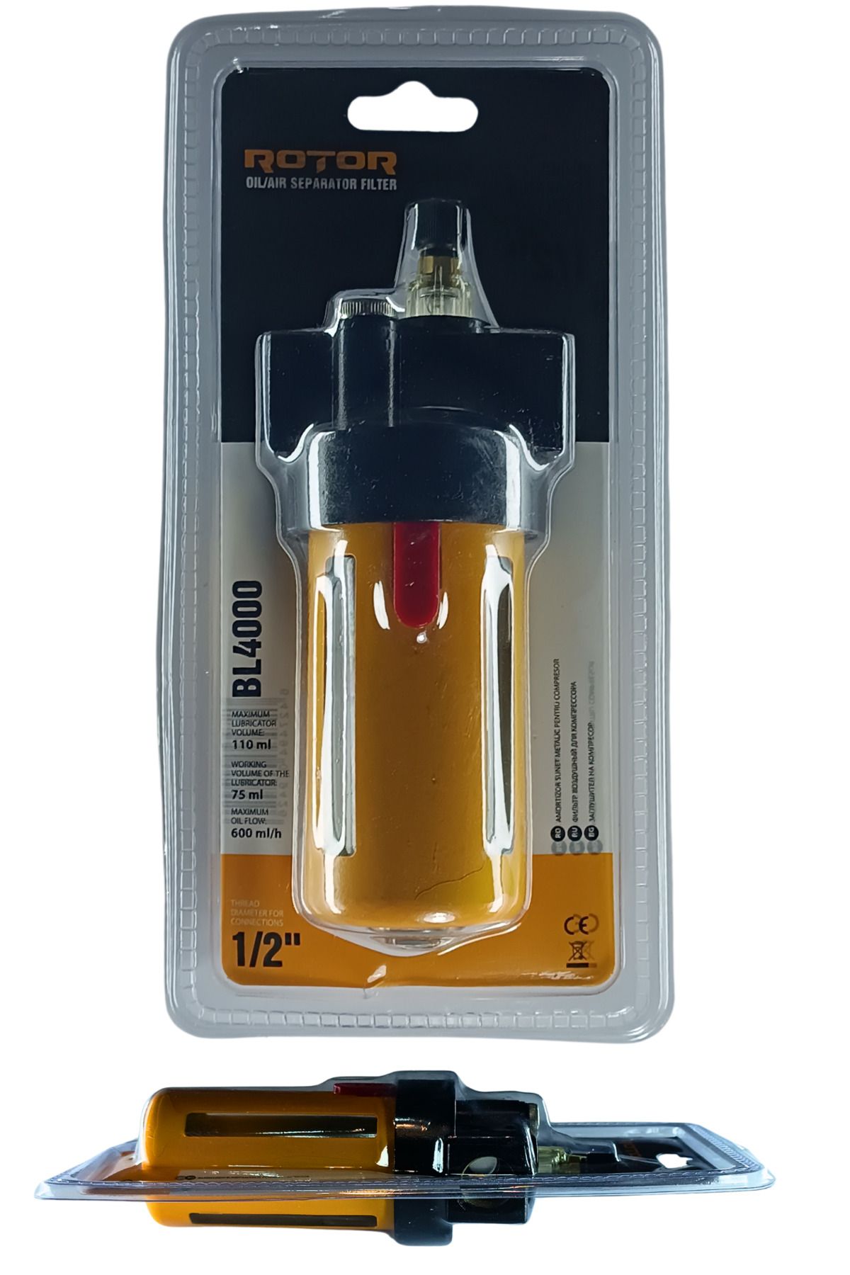 BL4000 Kompresör Yağ Filtresi, 1/2" bağlantı çapı ile tasarlanmış, yüksek kaliteli bir yağ filtrasyon sistemidir.; Bu filtre, yağ akışını 600 ml/saat kapasitesinde yöneterek, kompresörünüzdeki yağ kalitesini artırır ve ekipmanın ömrünü uzatır.; Dayanıklı malzemelerden üretilmiş olan BL4000, uzun ömürlü ve güvenilir bir performans sunarak, zorlu çalışma koşullarında bile etkili sonuçlar elde etmenizi sağlar.; Yağ filtresi, kolay kurulum ve bakım imkânı ile kullanıcı dostudur ve çeşitli kompresör sistemleriyle uyumlu olarak çalışır.; Düzenli filtre değişimi, yağ sisteminizin optimum performansını koruyarak enerji verimliliğini artırmanıza yardımcı olur.; BL4000 Kompresör Yağ Filtresi, hem endüstriyel hem de amatör uygulamalar için mükemmel bir tercihtir ve güvenilir yağ filtrasyonu sağlama konusunda etkili bir çözümdür.