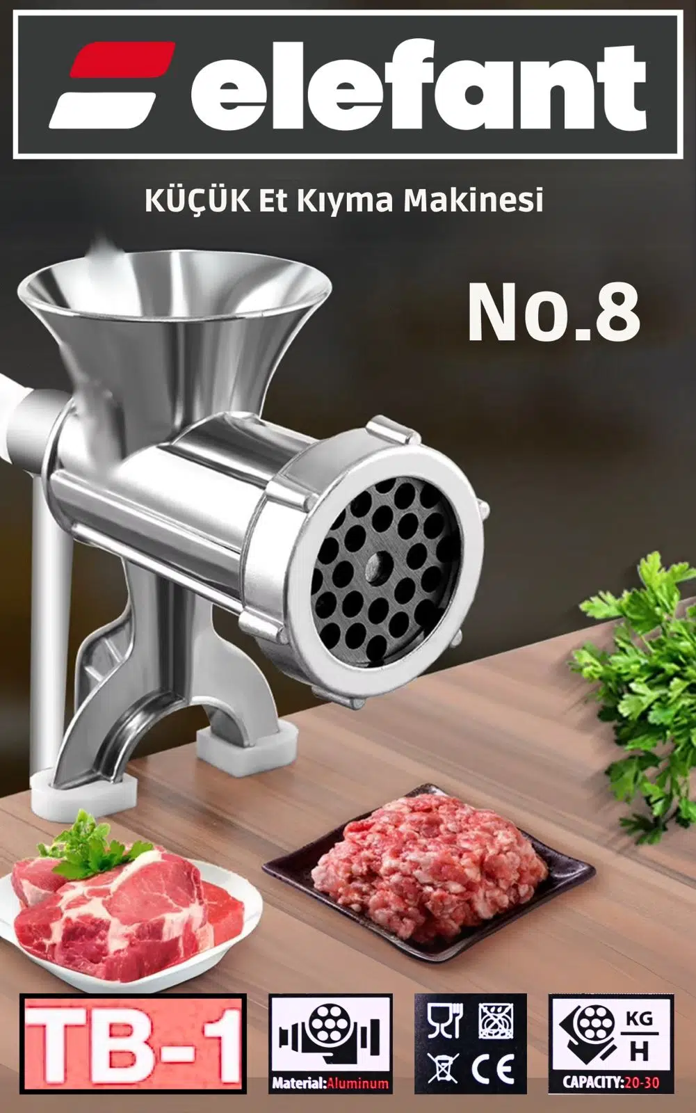 Ev yapımı kıyma, sucuk veya köfte hazırlamak için ideal bir seçim! ELEFANT TB-1 ile mutfağınızda profesyonel kalitede et işleme deneyimi yaşayın. ??