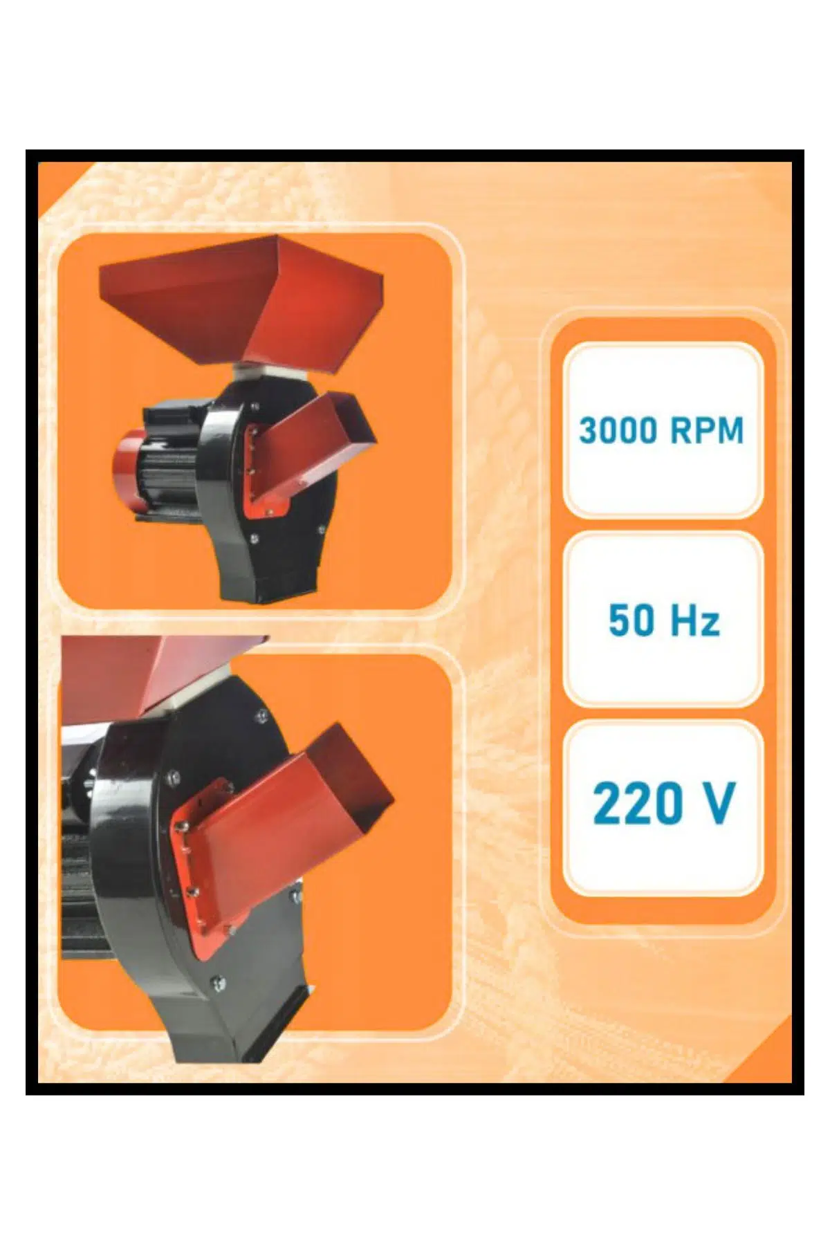EM-1.1E Elektrikli Öğütücü ve Değirmeni, meyve, sebze, yemler ve tahıllar gibi çeşitli malzemeleri işlemek için tasarlanmış yüksek kapasiteli bir cihazdır.; 3.9 kW motor gücü ve 200 kg/s kapasitesi ile etkili bir performans sunar, bu da onu hem ticari hem de tarımsal uygulamalarda ideal bir seçenek haline getirir.; Dayanıklı ve kaliteli malzemelerden üretilmiş olan bu öğütücü, uzun ömürlü kullanım ve güvenilir performans sağlar.; Kullanıcı dostu tasarımı, malzemelerin hızlı ve kolay bir şekilde işlenmesine olanak tanır.; Ayarlanabilir öğütme ayarları sayesinde, ihtiyacınıza uygun un veya yem kıvamını elde etmeniz mümkün olur.; Ayrıca, kolay temizlenebilir yapısı, bakım süreçlerini de basitleştirir.; EM-1.1E Elektrikli Öğütücü ve Değirmeni, verimliliği ve çok yönlülüğü ile gıda işleme ve tarım alanındaki işlerinizi hızlı ve etkili bir şekilde gerçekleştirmenize yardımcı olur.