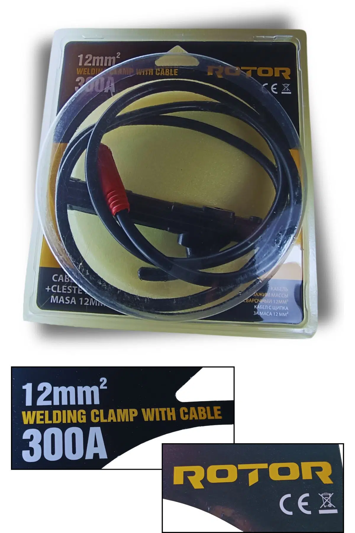 Kaynak Makinası için Kablolu Elektrot Tutucu, 12 mm² kesit alanına sahip yüksek kaliteli bir üründür ve 300A'ya kadar kaynak akımı taşıma kapasitesine sahiptir.; Dayanıklı ve hafif yapısıyla, uzun süreli kullanımlarda konfor sağlar.; Elektrot tutucunun ergonomik tasarımı, kullanıcı dostu bir deneyim sunarak kaynak işlemleri sırasında daha iyi bir kavrama ve kontrol sağlar.; Yüksek sıcaklıklara dayanıklı malzemelerden üretilmiş olan bu tutucu, zorlu çalışma koşullarında bile güvenilir performans gösterir.; Kablolu Elektrot Tutucu, hem profesyonel hem de amatör kaynakçıların ihtiyaçlarına uygun bir çözümdür.; Kaynak işlemlerinizin daha etkili ve güvenli bir şekilde gerçekleştirilmesini sağlarken, iş verimliliğinizi artırır.; Otomotiv, inşaat ve sanayi gibi çeşitli alanlarda rahatlıkla kullanılabilir.