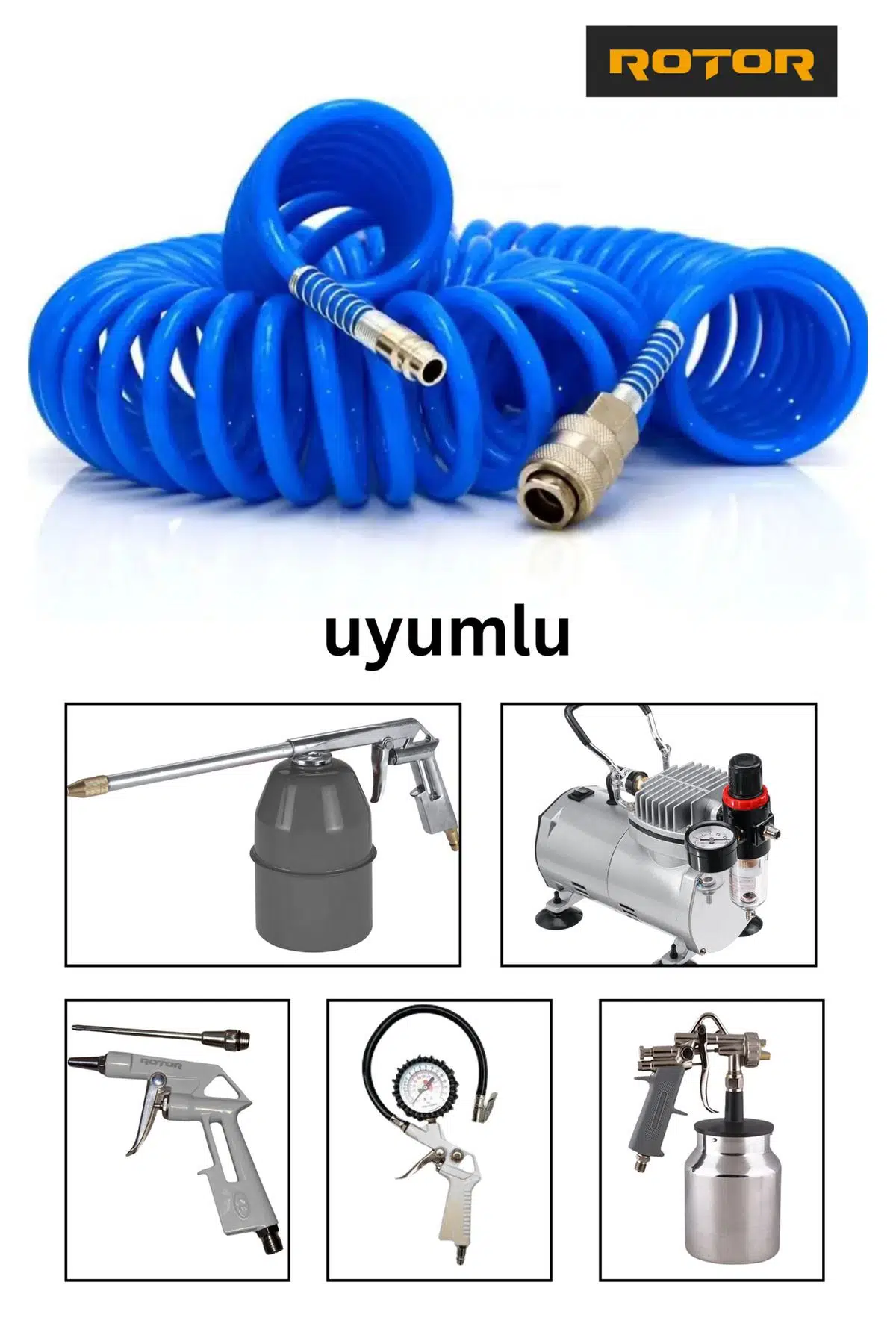 PU0508 (5X8X5) Kompresör Spiral Hava Hortumu, yüksek kaliteli ve dayanıklı bir hava hortumu olup, 5 metre uzunluğuyla geniş bir kullanım alanı sunar.; Spiral yapısı sayesinde esneklik ve hafiflik sağlayarak, dar alanlarda bile kolayca hareket etmenizi mümkün kılar.; 5x8 mm ölçüleri ile yüksek hava akış kapasitesi sunan bu hortum, kompresör sistemleriyle uyumlu olarak çalışır ve çeşitli uygulamalarda güvenilir bir performans sergiler.; UV ışınlarına ve kimyasallara dayanıklı malzeme ile üretilmiş olan PU0508, uzun ömürlü kullanım için idealdir.; Bu hortum, otomotiv, inşaat ve endüstriyel uygulamalarda etkili hava transferi sağlarken, kullanıcıların işlerini daha hızlı ve verimli bir şekilde gerçekleştirmelerine yardımcı olur.