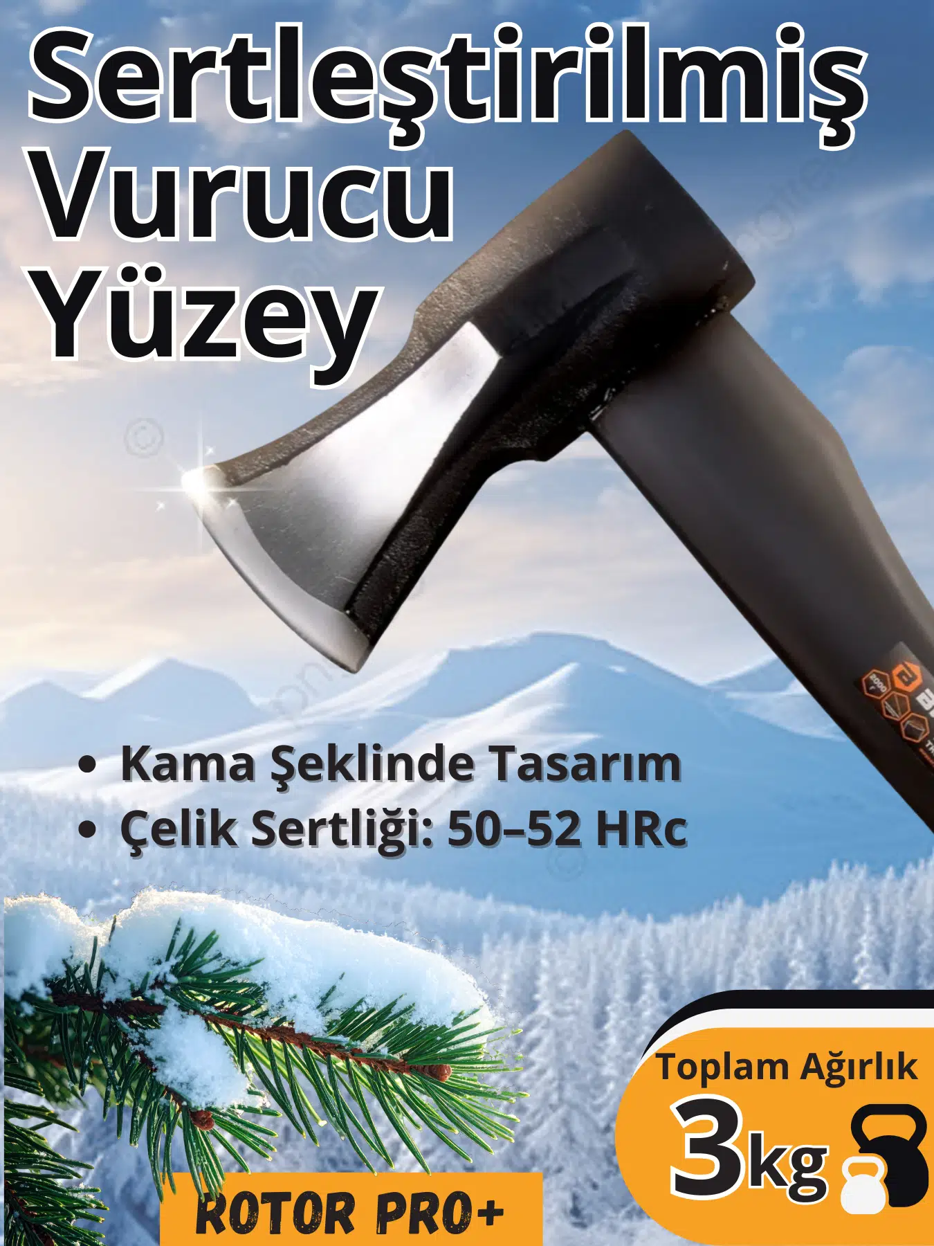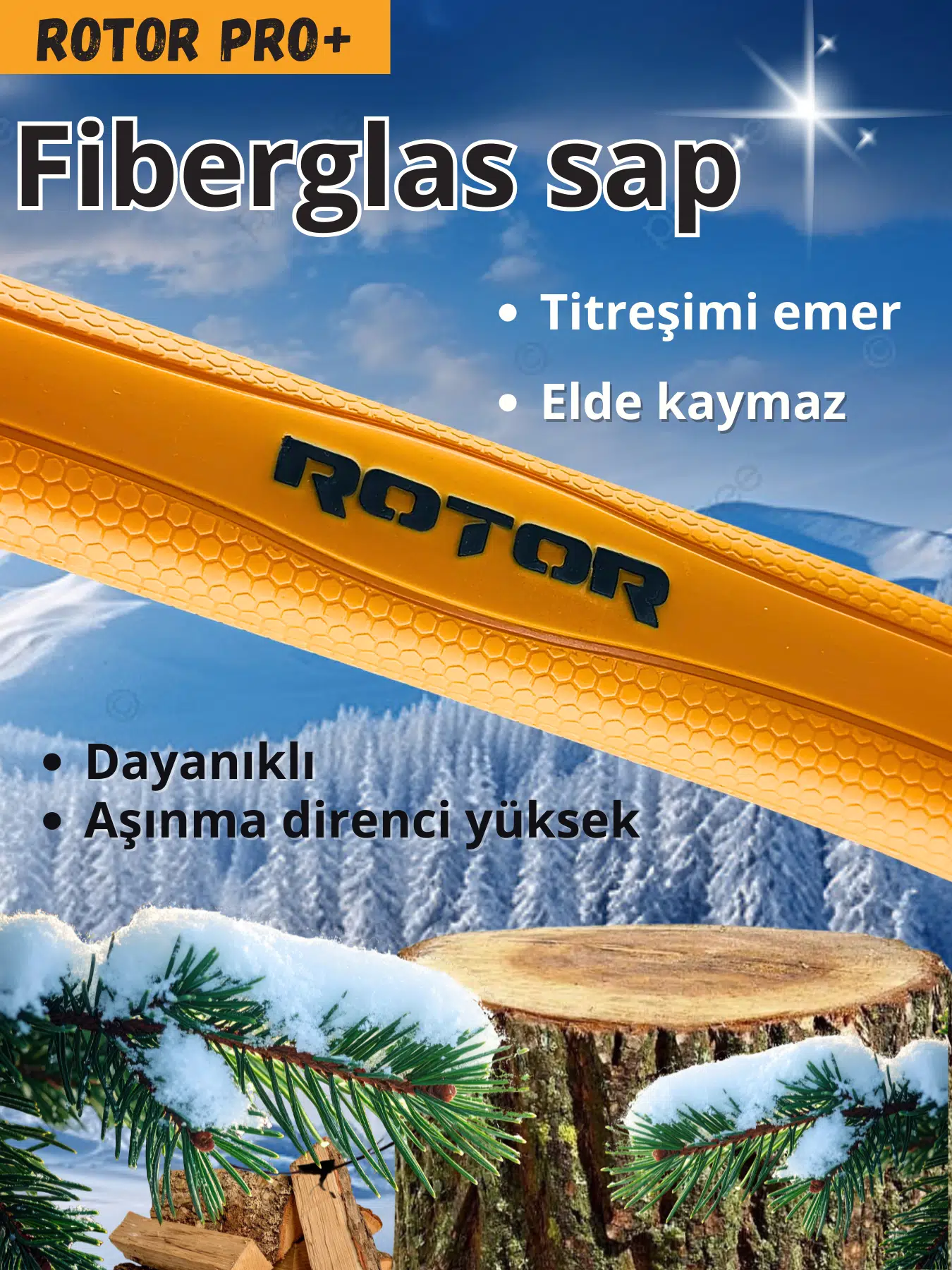 ROTOR Pro Plus Fiber Saplı Odun Yarma Baltası – Maksimum Güç, Üstün Dayanıklılık