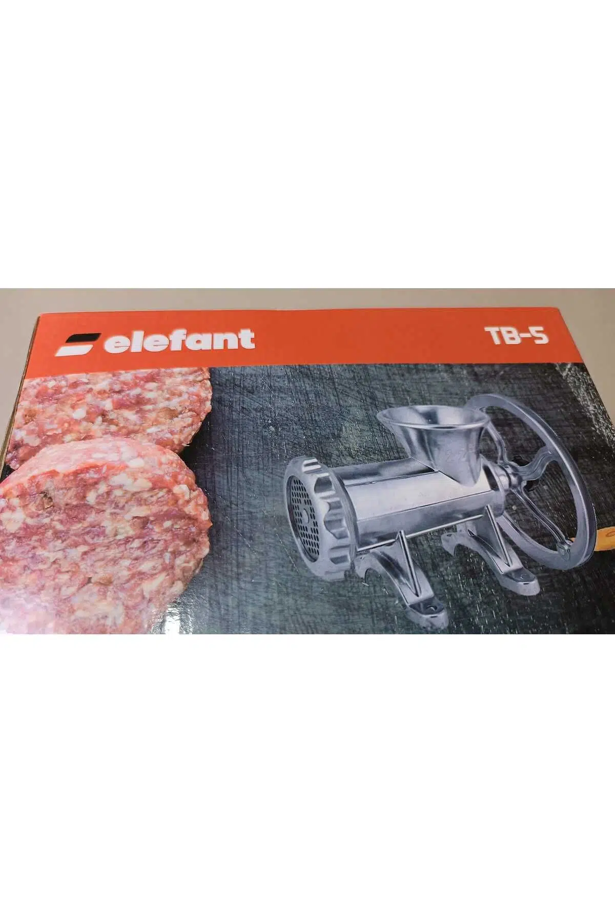Marka: ELEFANT, ; Model: TB-5. ; ; Performans: Saatte 60-70 kg et kıyma kapasitesi.; ; ; No: 22. ; Malzeme: Sağlam katı alüminyum.; ; ; Manuel kullanım; motor bağlantısı için kayışla uyumlu.; ; ; Yüksek dayanıklılık ve verimli performans sunar.; Ayna, gıda sınıfı paslanmaz çelikten yapılmıştır.; Ayna çapı 8 cm .; Delikler 8,5 mm
